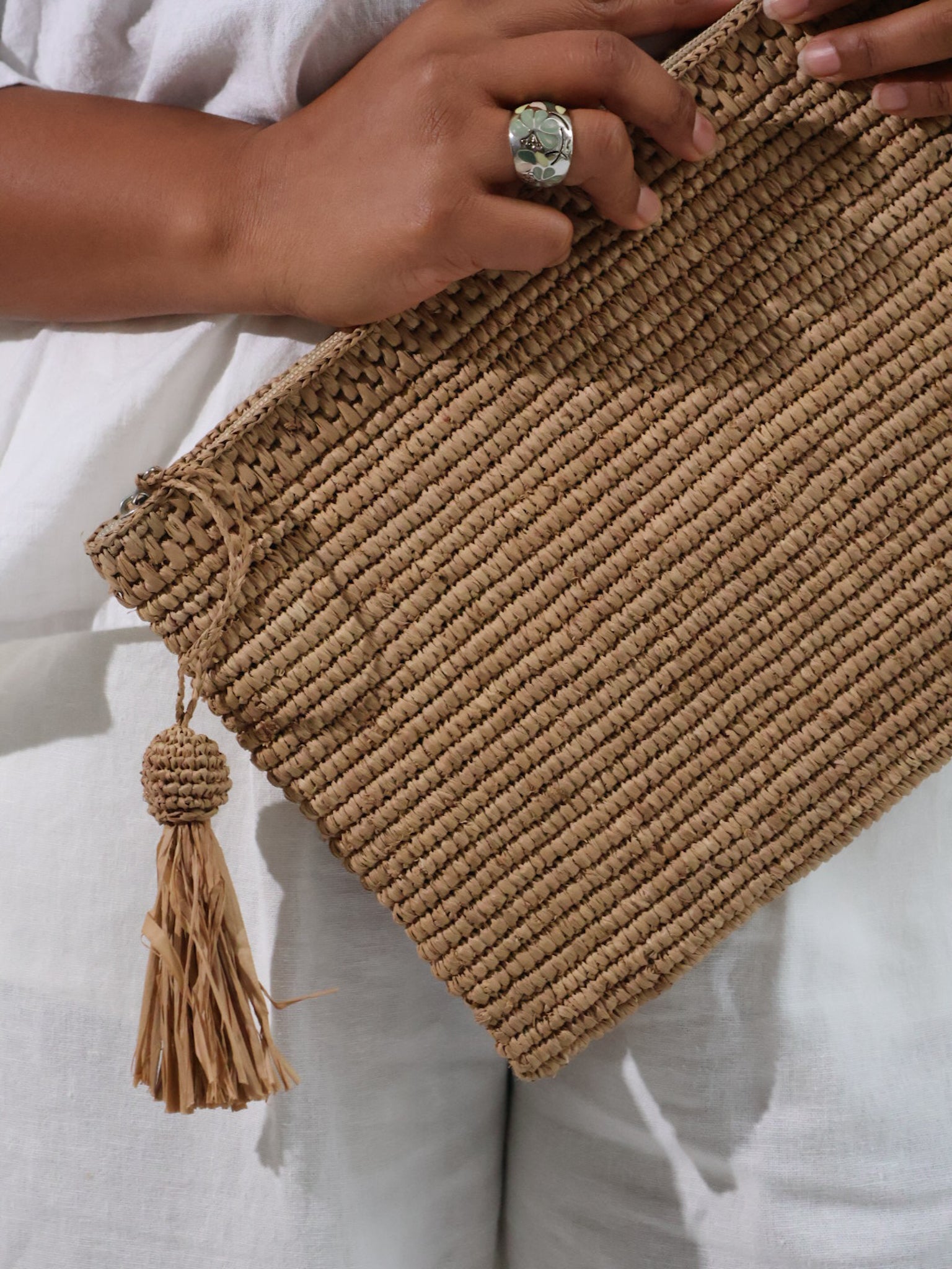 Zeitlose Raffia Clutch